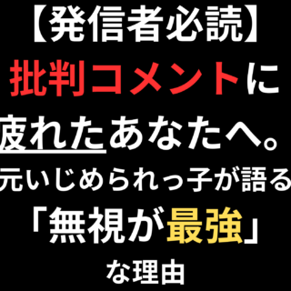 批判コメントに疲れていませんか?YouTubeやSNSで炎上対応を失敗した経験から学んだ「無視が最強」な理由を、元いじめられっ子のギタリストが本音で語ります。発信者が心を守るための具体的な対処法も解説。